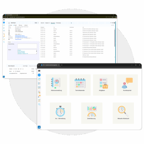 Das WINWORKER Customer-Relationship-Management (CRM) lässt sich am besten als Kundenkontakt-Management beschreiben: Per Webbrowser direkt auf relevante Kundeninformationen aus der Bürosoftware zurückgreifen sowie Interaktionen mit Endkunden zentral hinterlegen – alles „just in time“.