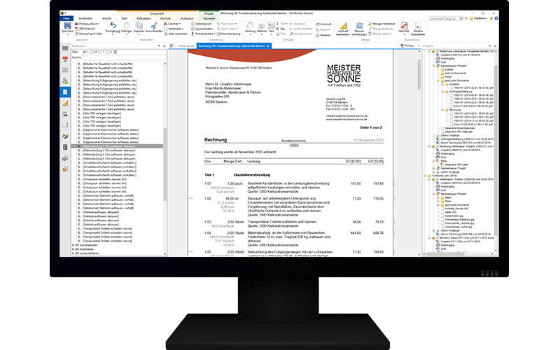 Die WinWorker Software unterstützt Anwender u. a. bei der Angebots- und Rechnungserstellung, bei der Kalkulation und bei der Baustellenvorbereitung sowie bei der Verwaltung aller wichtiger Daten, z. B. Kundenadressen.