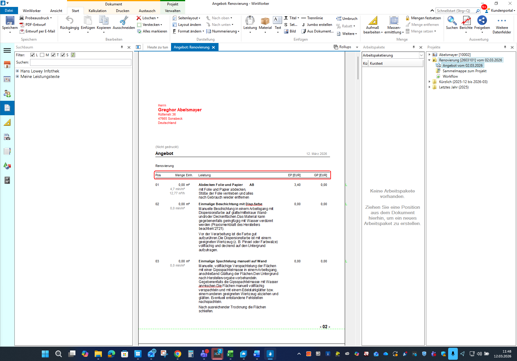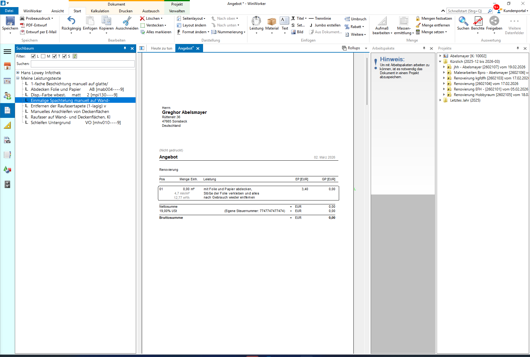 Wiederholen Sie diesen Vorgang für alle weiteren Positionen und bauen Sie Ihr Angebot Schritt für Schritt auf.