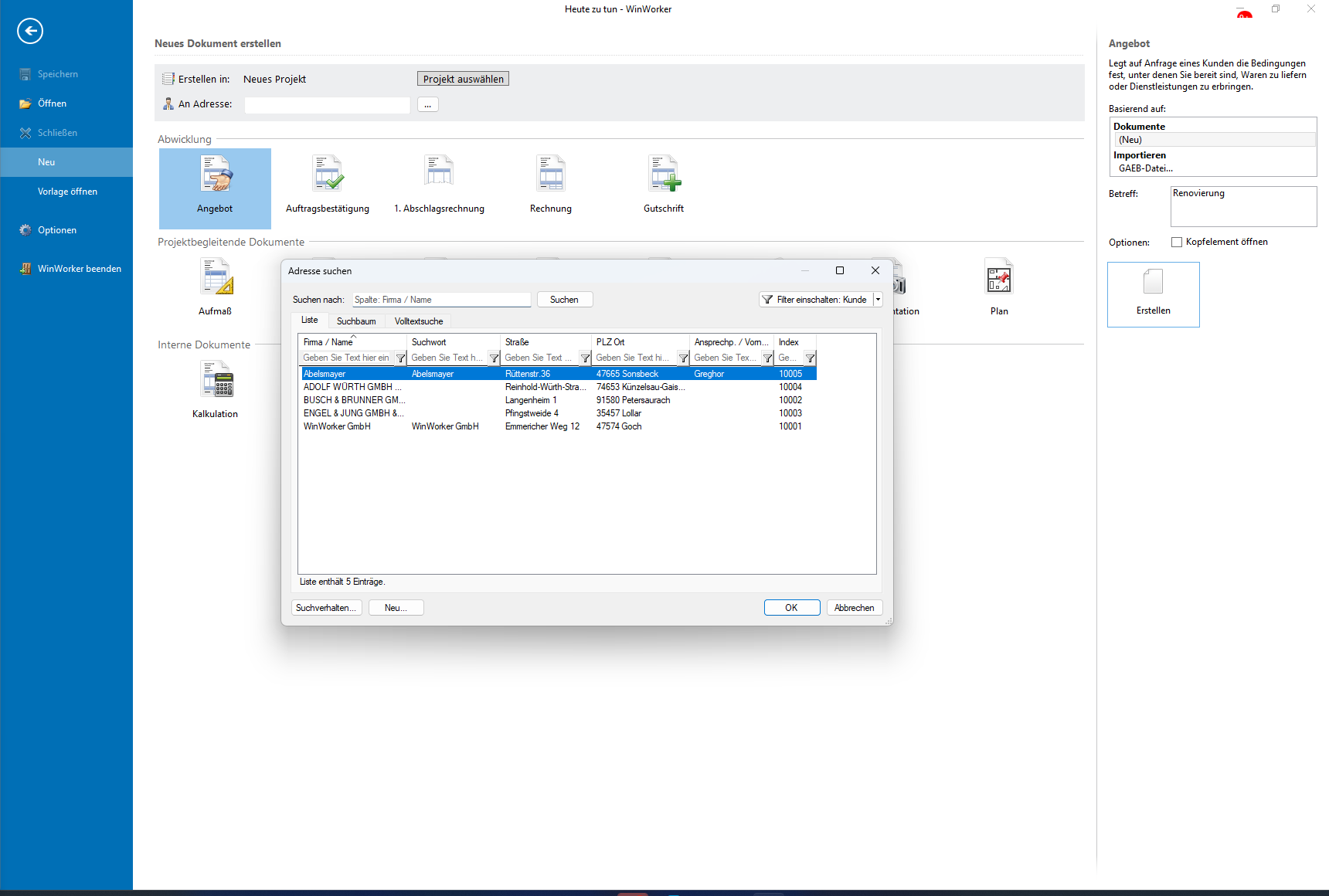 Wählen Sie nun den Kunden aus, für den das Angebot erstellt werden soll – schnell, übersichtlich und direkt.